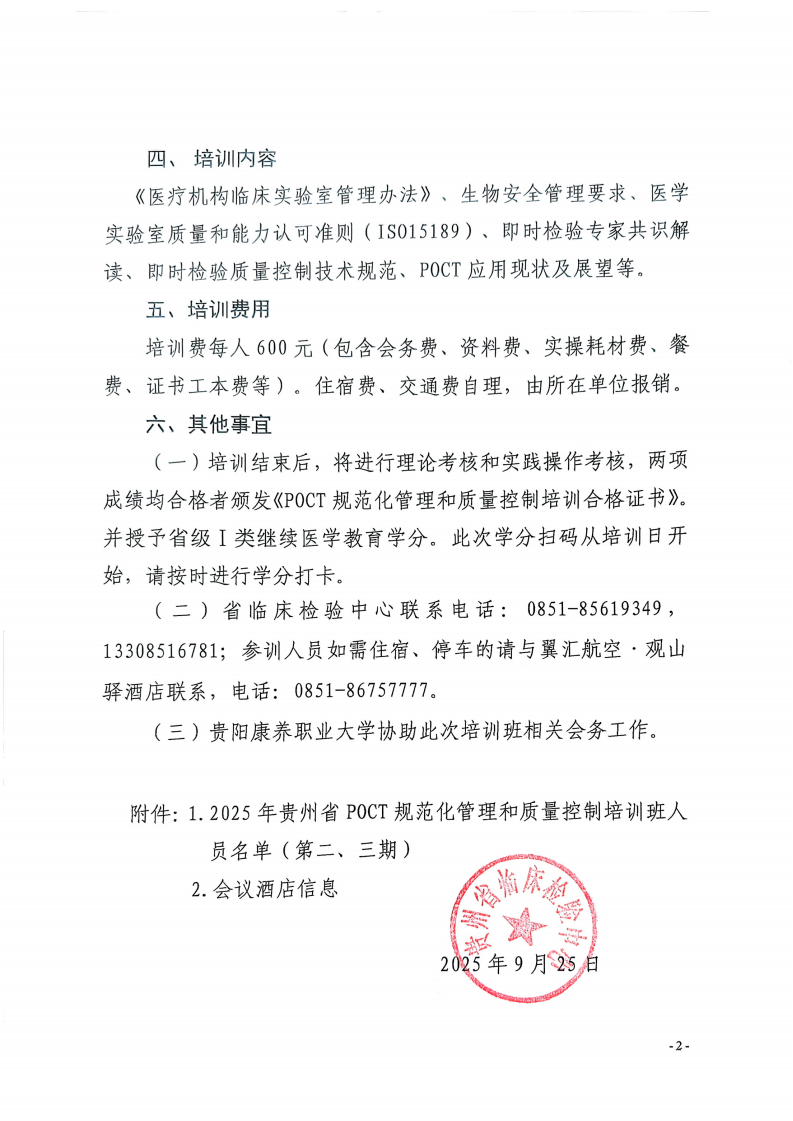 关于举办2025年度贵州省POCT规范化管理和质量控制培训班(第二、三期)的通知.pdf