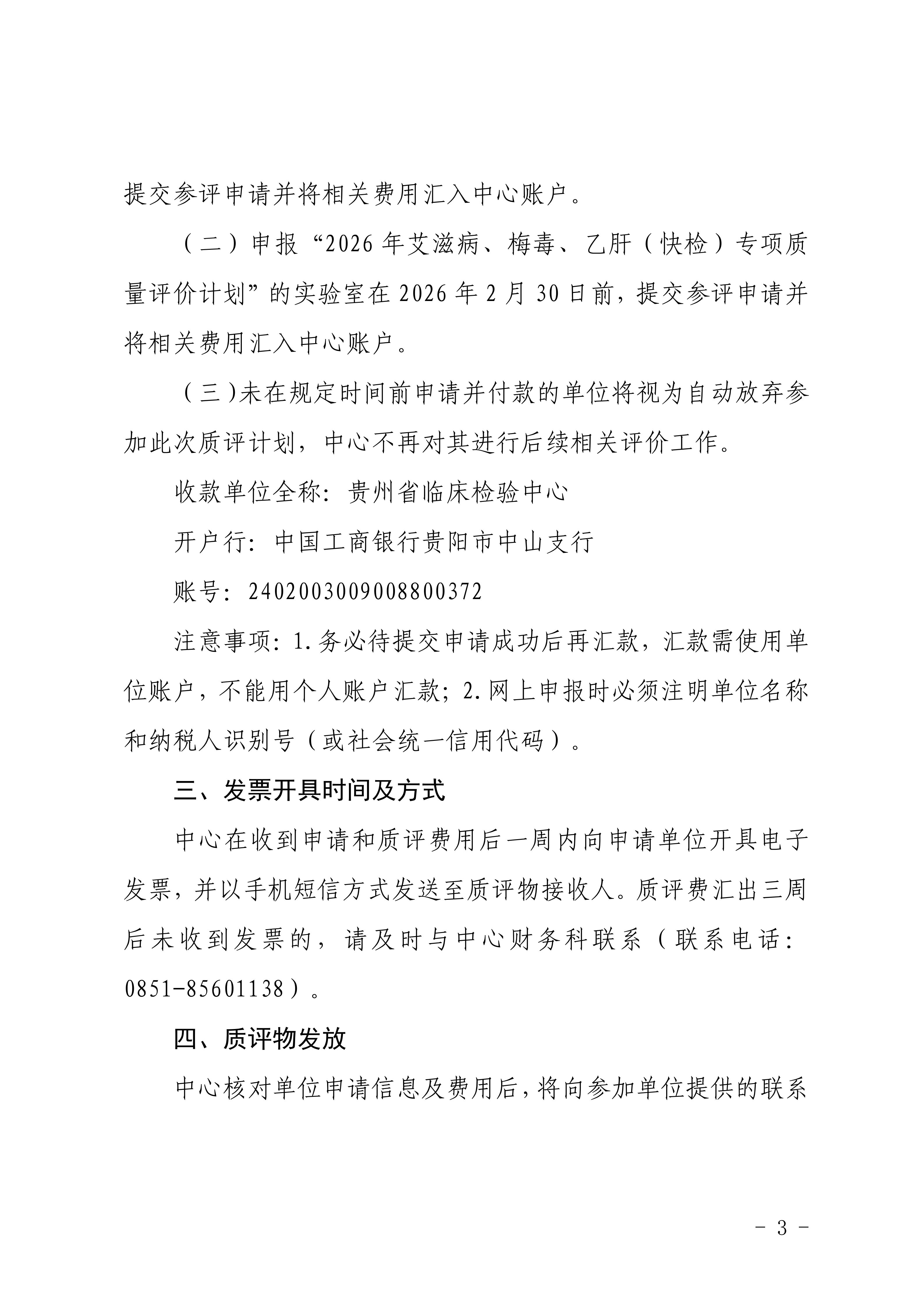 关于下发2026年度贵州省临床检验质量评价计划的通知