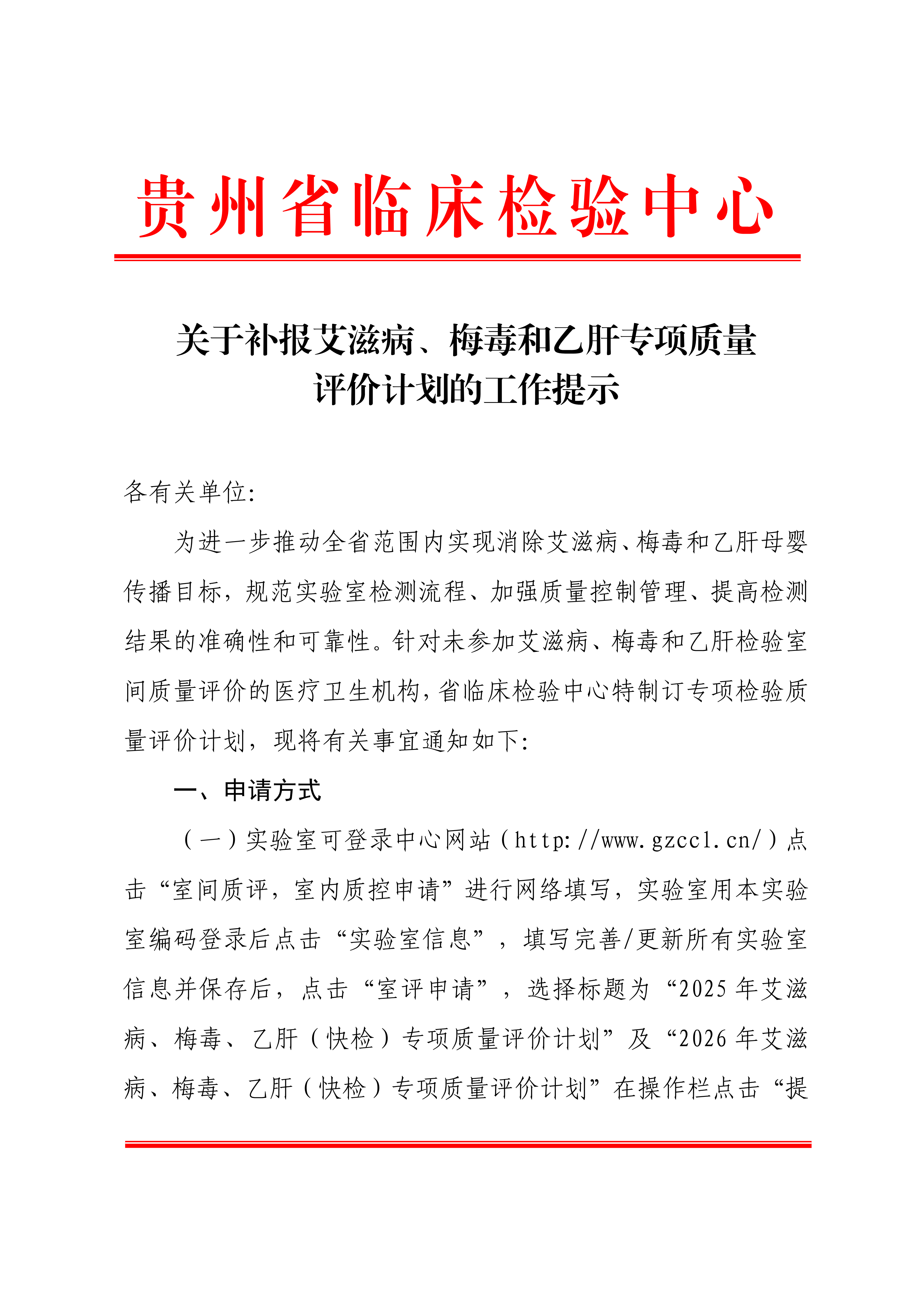 关于补报艾滋病、梅毒和乙肝专项质量评价计划的工作提示