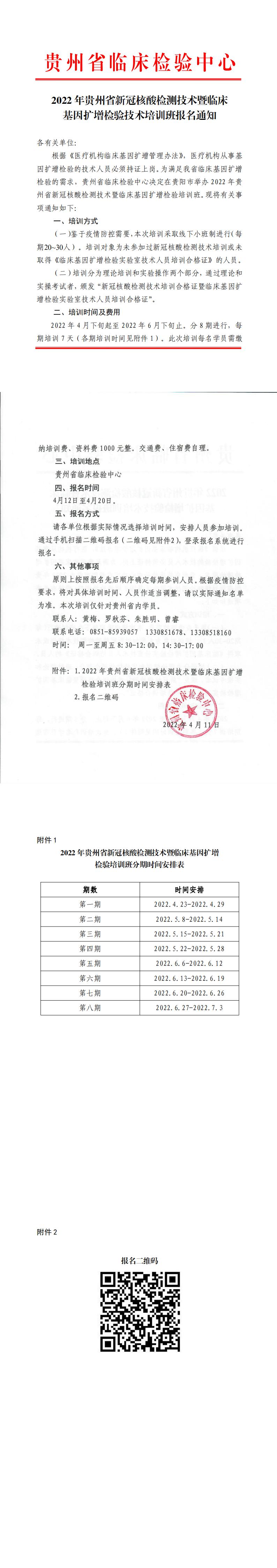 2022年贵州省新冠核酸检测技术暨临床基因扩增检验技术培训班通知.pdf