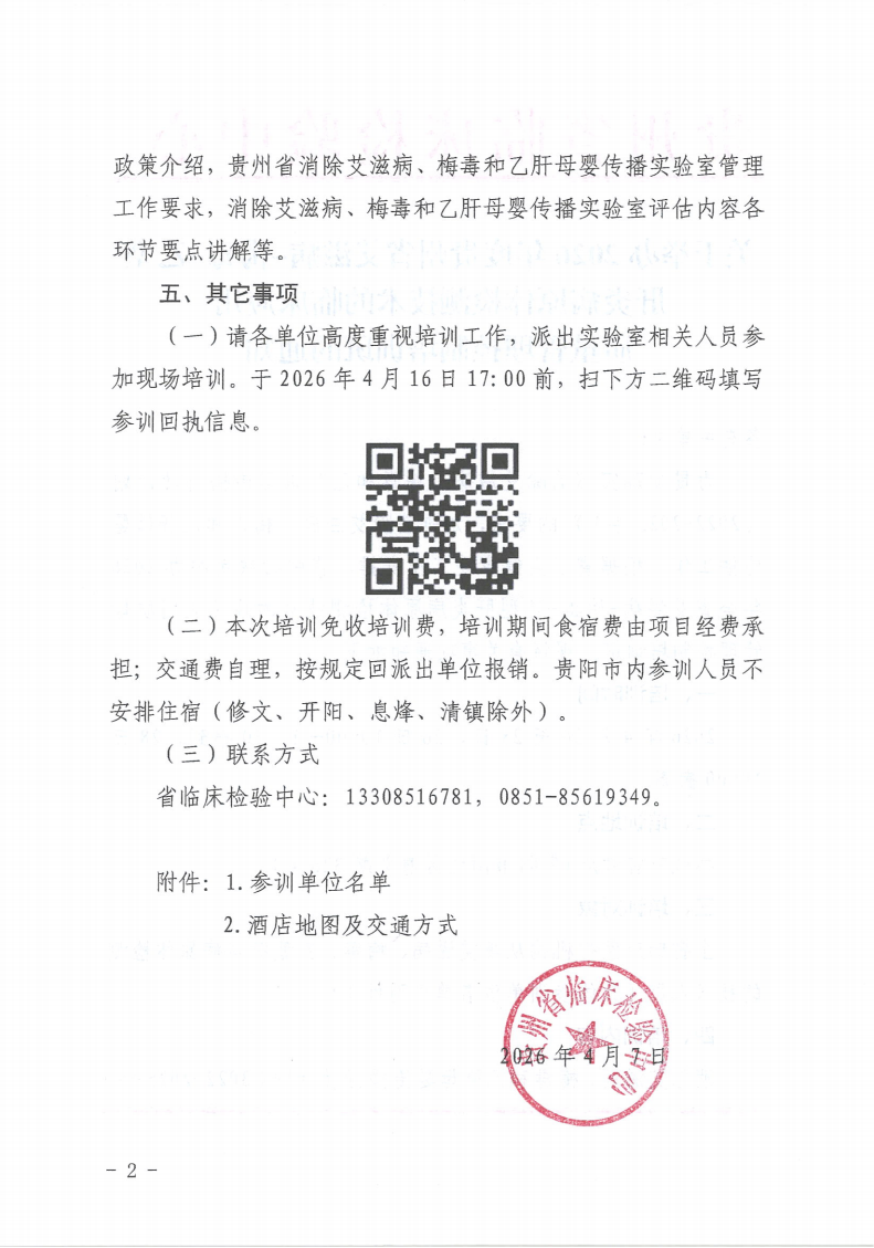 关于举办2026年贵州省艾滋病-梅毒-乙型肝炎病原体检测技术的临床应用质量管理控制培训班的通知.pdf